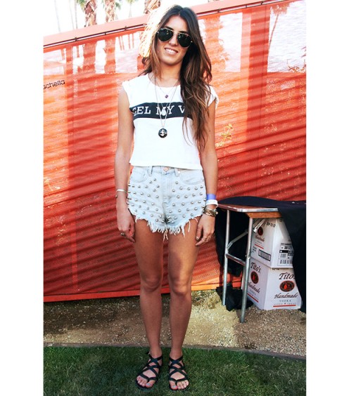 I spy layers, colorful prints, denim cutoffs, overalls, Chanel, Alexander Wang, cutoff tops, and reflective and retro sunglasses.